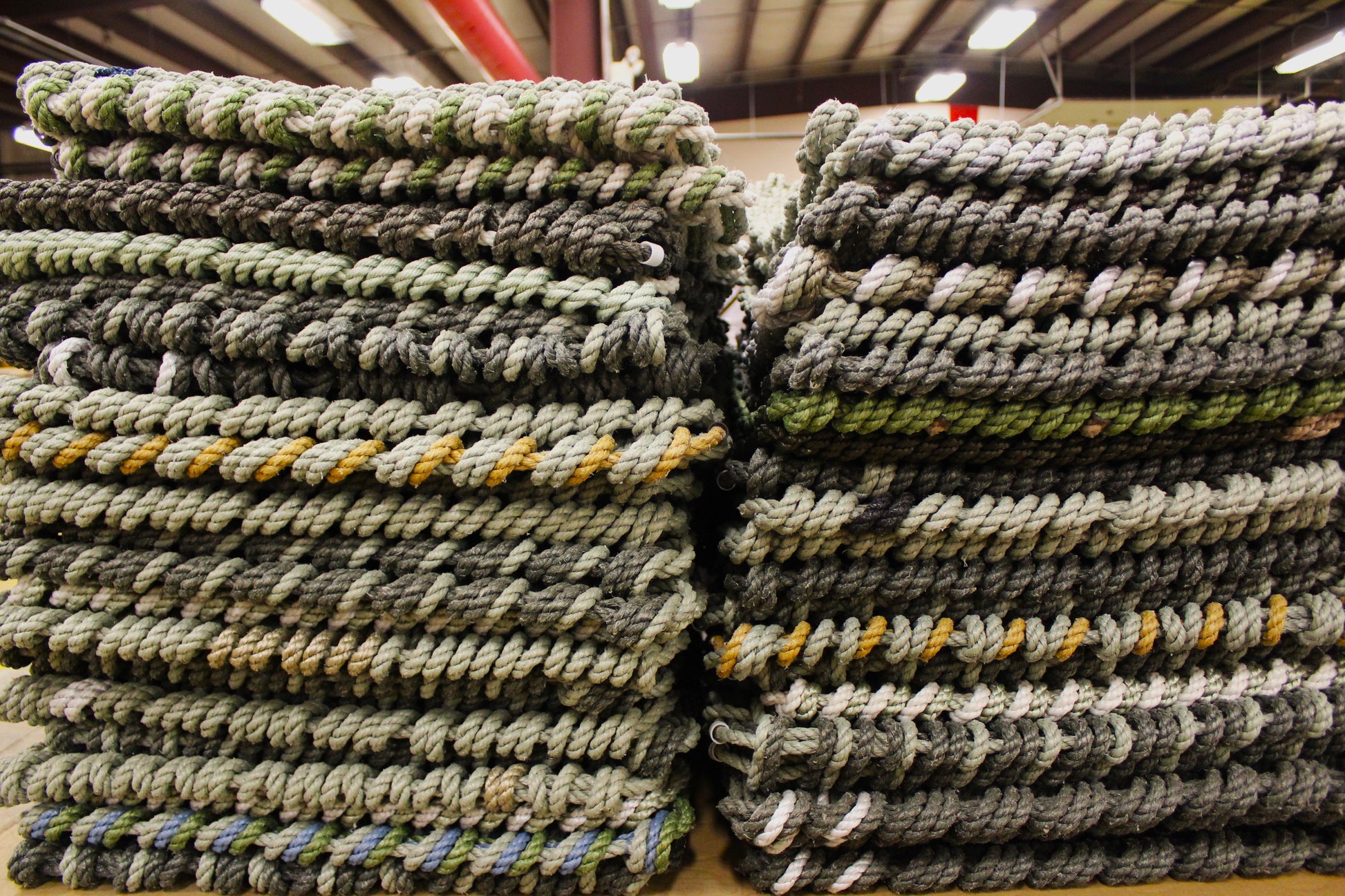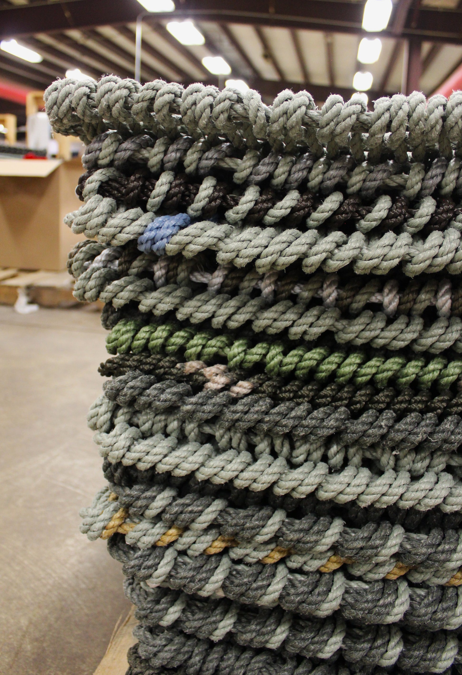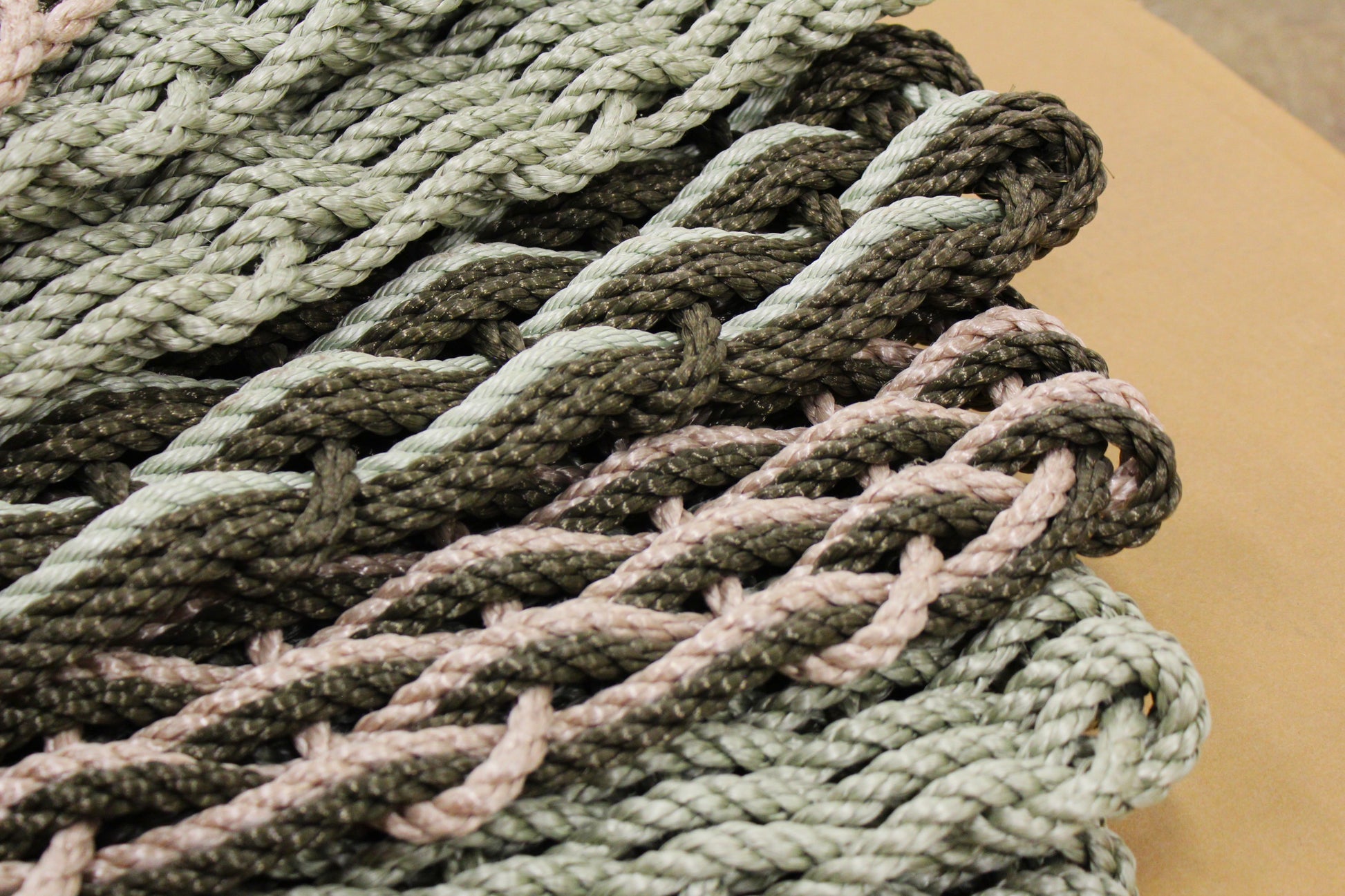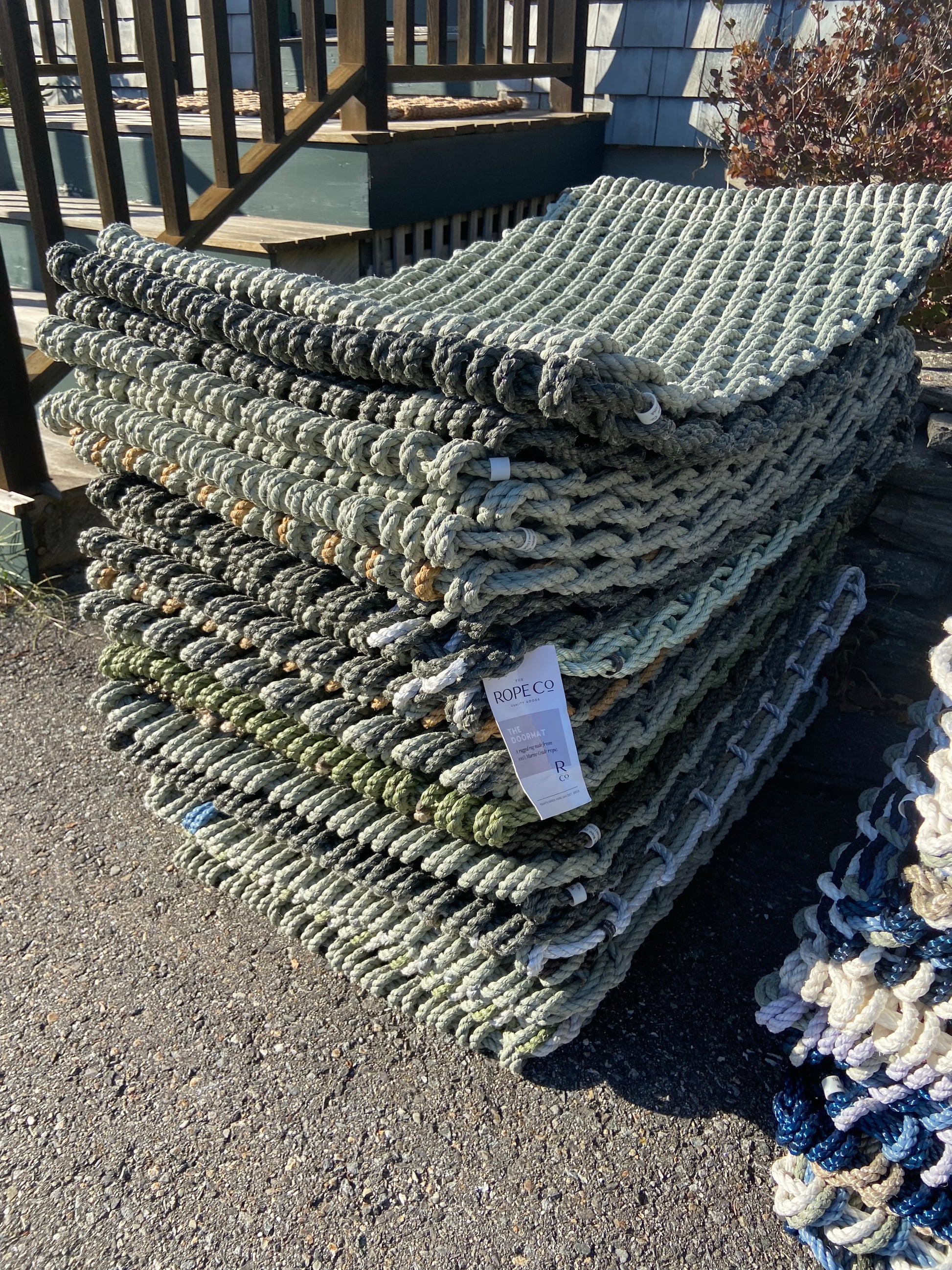 A durable, Maine-made, handwoven rope doormat, inspired by the natural tones of Maine's iconic landscapes.
