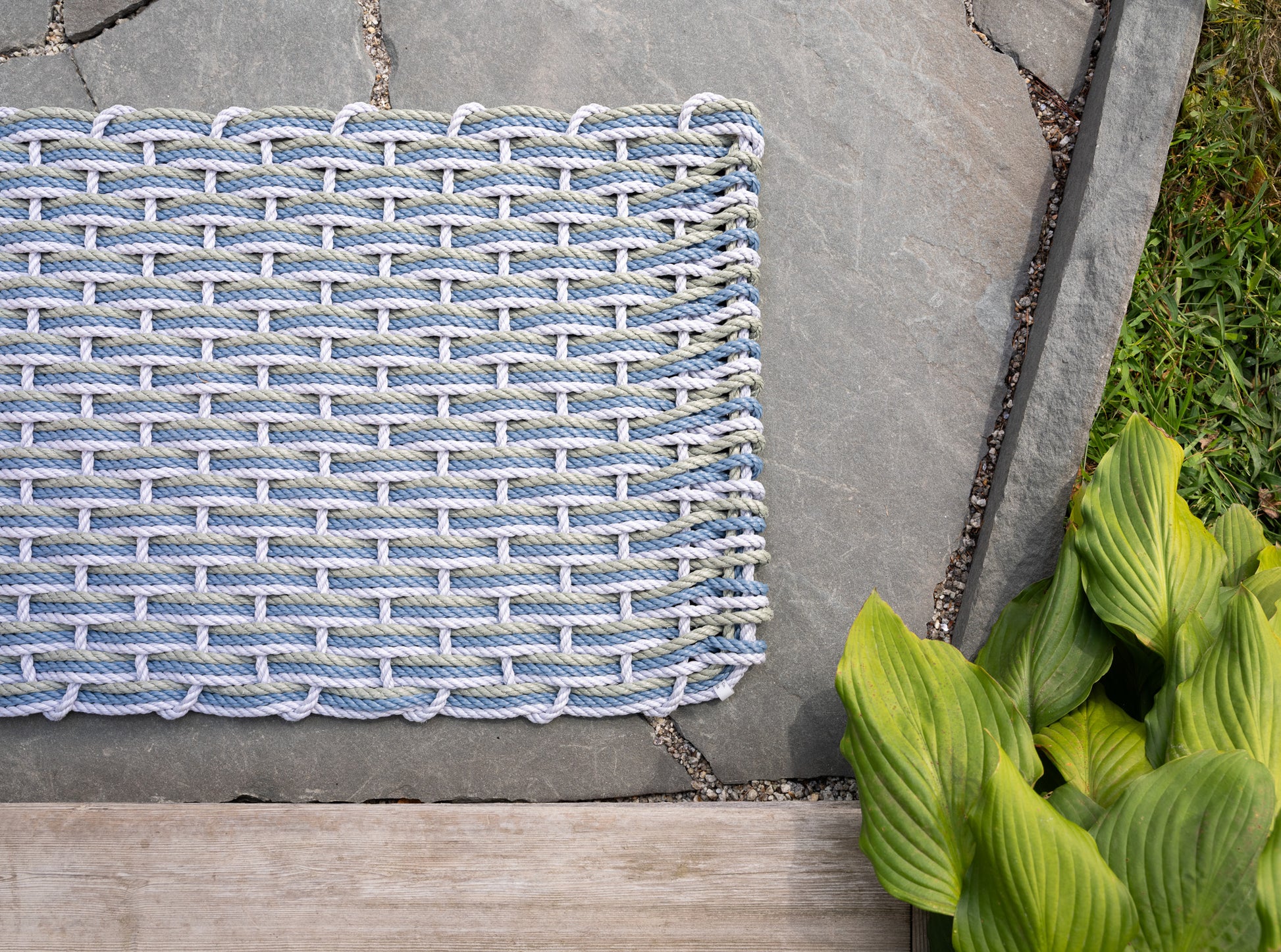 Every doormat is carefully hand-woven in Maine. The doormat will not mold or mildew and care is quite simple. To clean the doormat an occasional shake-out will do. It repels water during rain showers and doesn’t get waterlogged. We hope you feel the heart in our simple, but rugged product as you brush your shoes off and walk inside. It is an honor to greet you and your friends at the front door.
