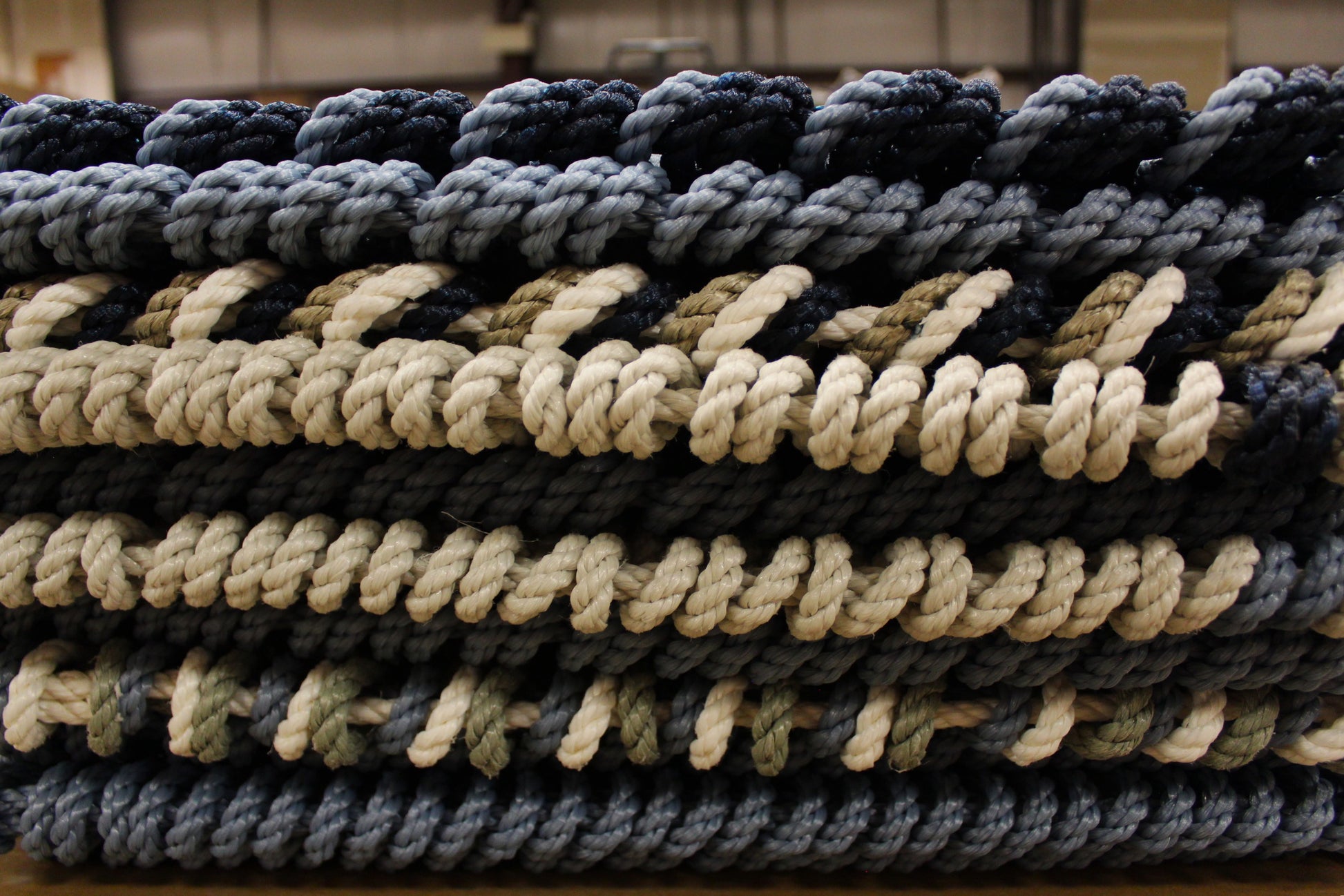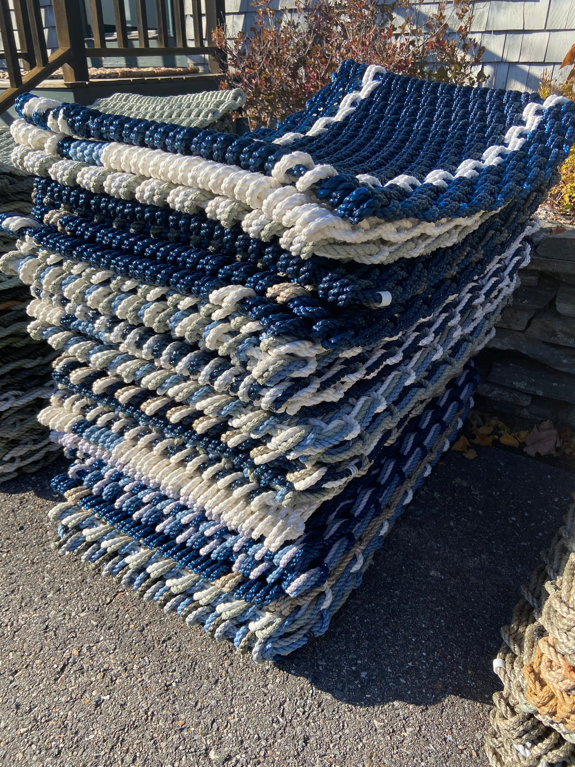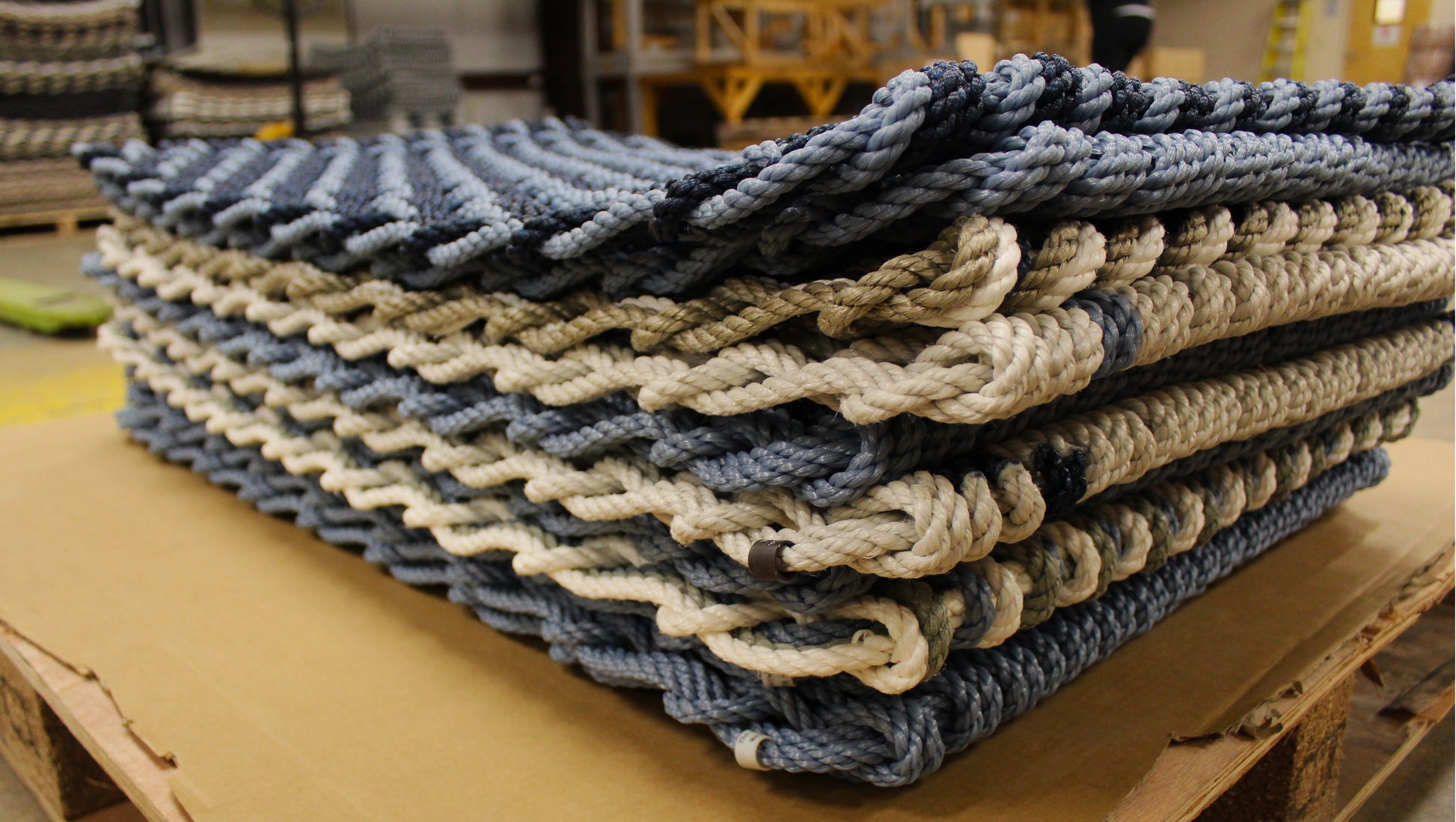 A durable, Maine-made, handwoven rope doormat, inspired by the natural tones of Maine's iconic landscapes.