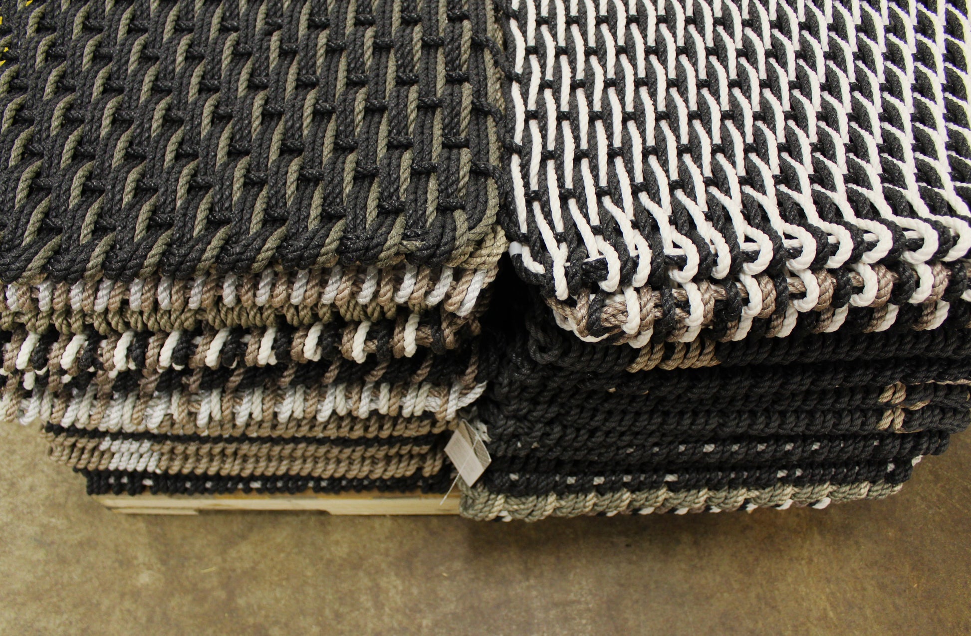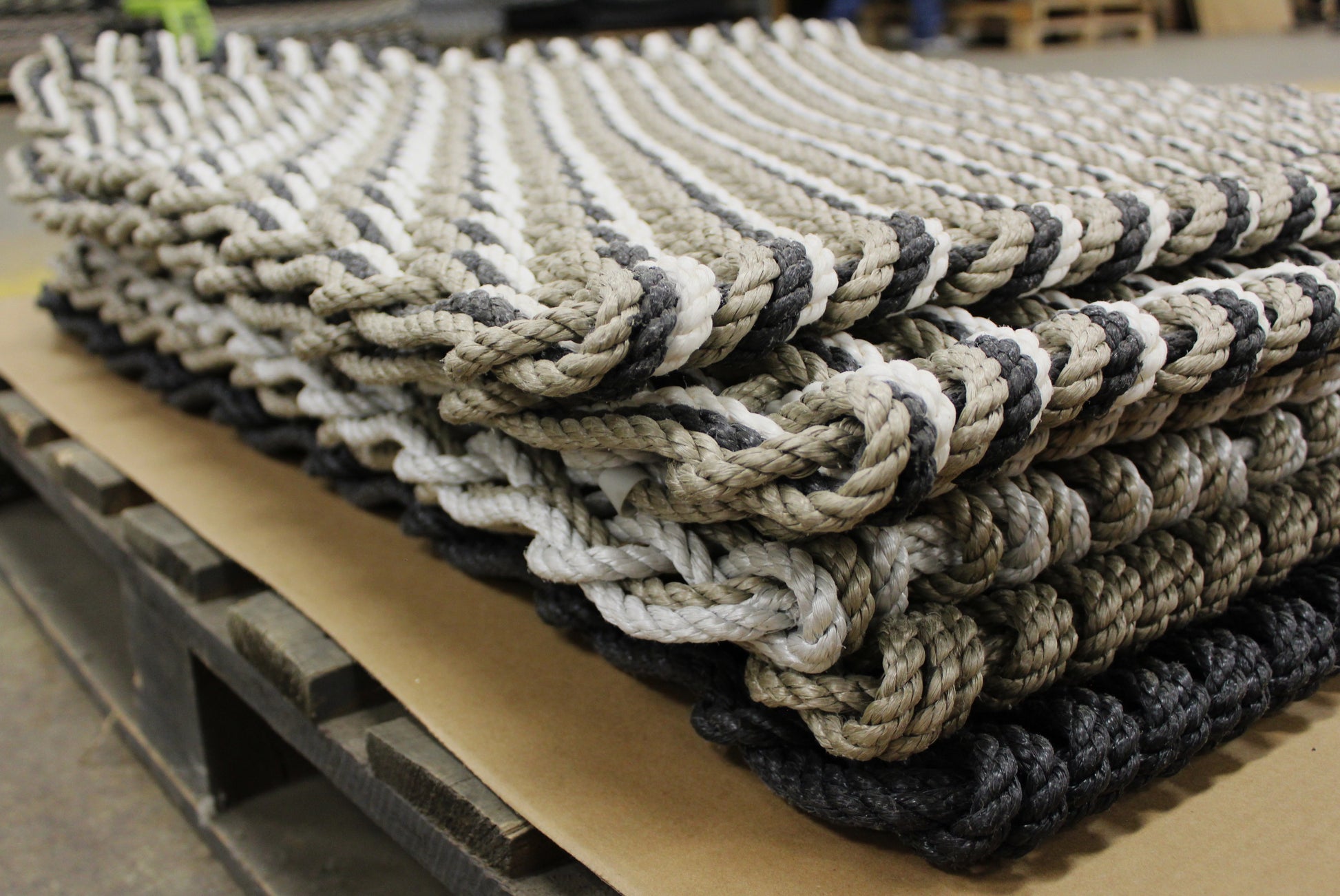 A durable, Maine-made, handwoven rope doormat, inspired by the natural tones of Maine's iconic landscapes.
