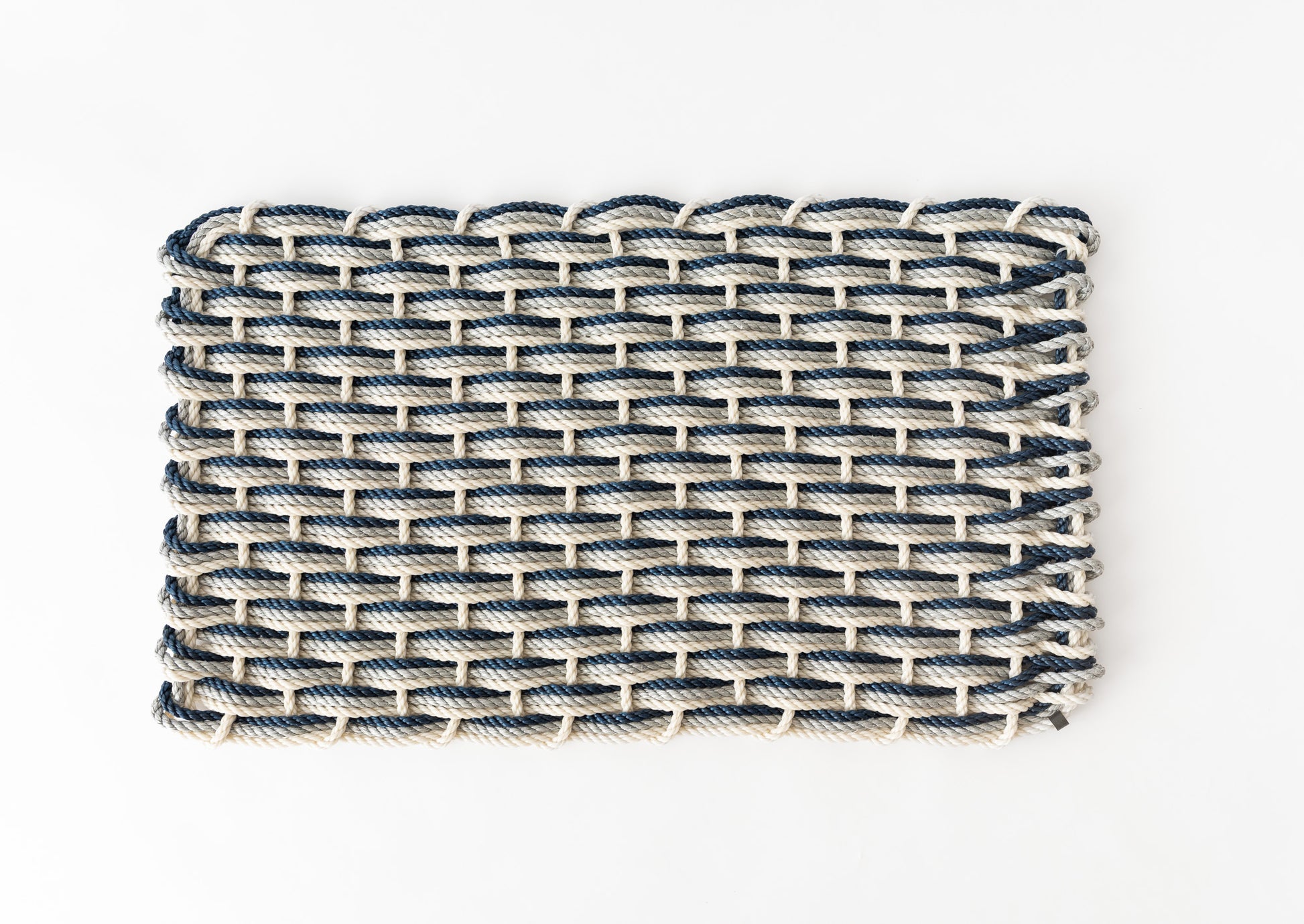 A durable, Maine-made, handwoven rope doormat, inspired by the natural tones of Maine's iconic landscapes.