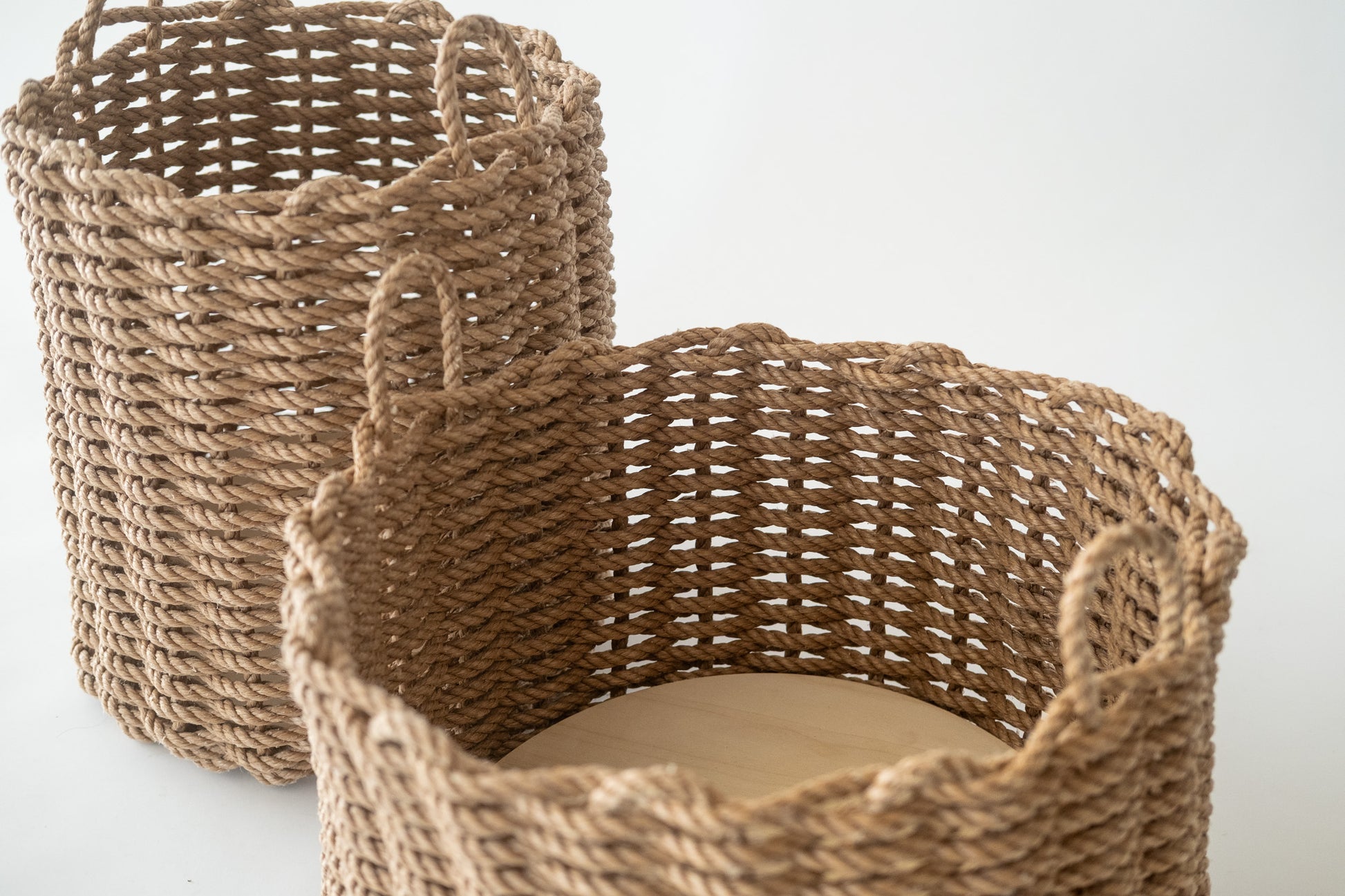 Handwoven from rugged rope and anchored by a sturdy Baltic Birch plywood base, our baskets combine strength with beauty. Â Inspired by the colors and textures of iconic coastal landscapes, these timeless nautical pieces bring an intentional touch to any space. Thoughtfully crafted to add both style and functionality, they enhance the character and warmth of the home.